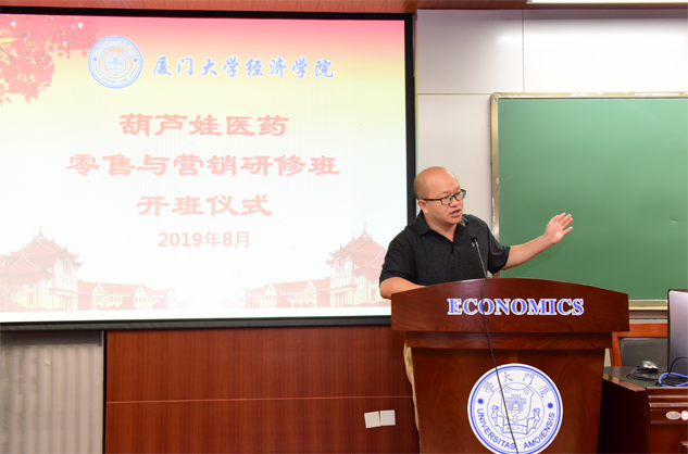 在开班仪式上,廖景峰主任首先代表厦门大学经济学院热烈欢迎泛亚电竞医药零售与营销研修班的学员到厦大学习,并就厦门大学及经济学院的相关情况进行了介绍。他说,泛亚电竞学员走进厦大就是厦大的校友,希望未来的日子能够关心、支持母校的发展,多提宝贵意见,同时他也祝大家在厦大学习期间学有所成、学有所获。